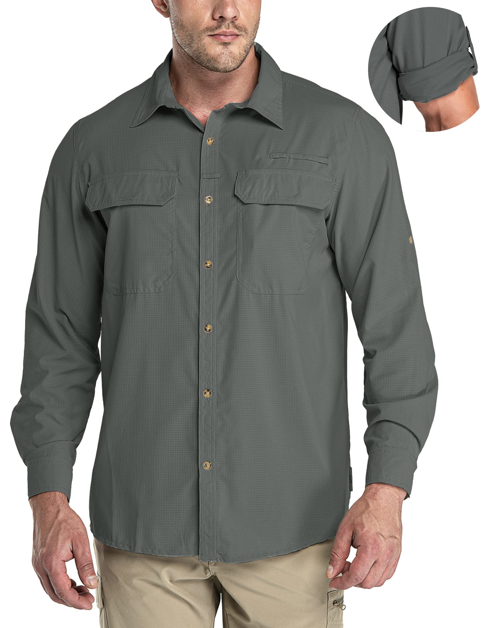 33,000ft Men's Long Sleeve Sun Protection Shirt UPF 50+ - Quick Dry UV Cooling Fishing Shirt for Travel, Safari, Camping